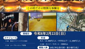 【イベント情報】メープルシロップ採取体験 2026年1月29日 詳細はこちら 【イベント情報】かてりえ落語会 2026年1月7日 詳細はこちら 【イベント情報】12/14(日)世界農業遺産認定10周年記念イベント『前昼祭』 2025年12月8日 詳細はこちら 【お知らせ】令和7年度神楽日程について 2025年12月4日 詳細はこちら 【イベント】しゅわフェスin椎葉村 2025年11月18日 詳細はこちら 【1日1組限定ツアー】椎葉の秘境を遊ぶ!パックラフト&白鳥山・御池登山2日間!! 2025年11月4日 詳細はこちら 【イベント】上椎葉ダム観光放流 2025年11月1日 詳細はこちら 【ワークショップ】山は招く芸術祭 愛農かまどづくりワークショップ 2025年10月30日 詳細はこちら 【イベント情報】椎葉厳島神社秋祭り 2025年10月15日 詳細はこちら 南の秘境・椎葉村で北のアイヌ文化を学ぶ!食とことばのワークショップ 2025年10月9日 詳細はこちら 【イベント情報】山は招く芸術祭 2025年10月8日 詳細はこちら 椎葉平家まつり2025 2025年9月17日 詳細はこちら 1 / 612345...»最後 »
